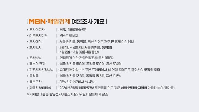 MBN은 이번 여론조사에서 서울 '한강벨트'의 광진을과 용산 지역구에 대한 여론조사를 새로 진행했습니다.