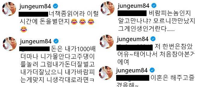 이번에는 계정을 통해 남편의 외도를 서슴없이 폭로했다. 누리꾼의 악플에도 "바람 피우는 놈인지 알고 만나냐? 모르니까 만났지. 그게 인생인 거란다", "태어나서 처음 참아 본 거다"라며 거침없이 맞받아쳐 응원을 받았다.
