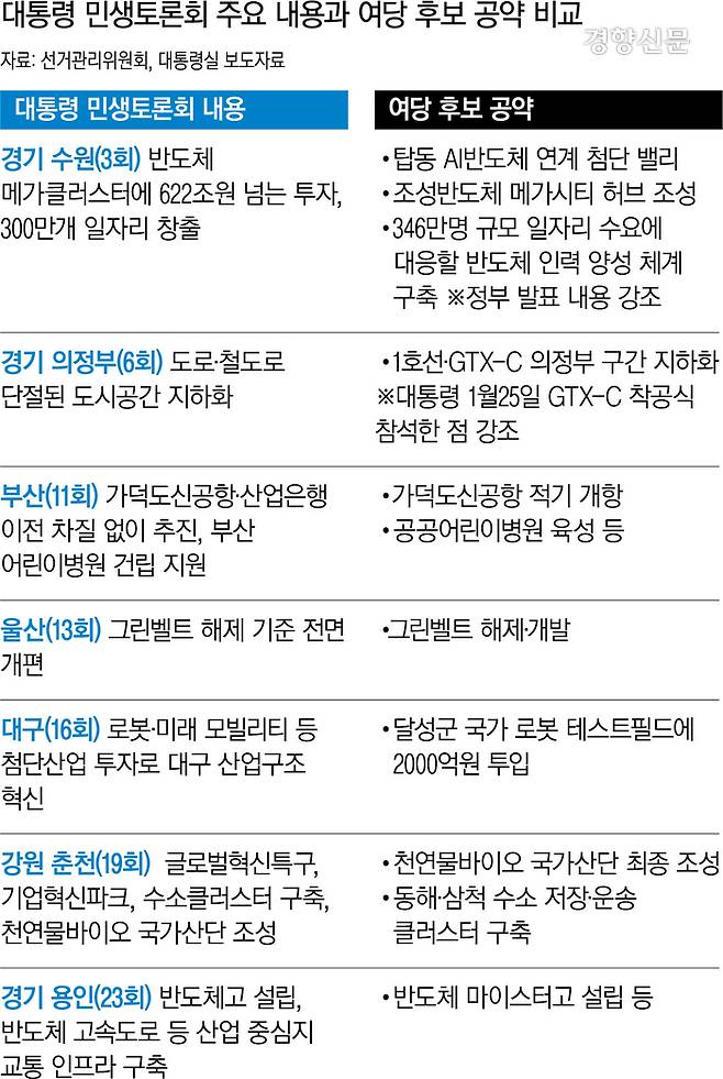 대통령 민생토론회 전수조사 해보니···여당 후보 공약과 ‘판박이’