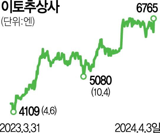 올해는 사무라이7 기업 중에 한 곳으로 뽑힌 미쓰비시 상사의 주가가 50% 넘게 올랐다. 반면 이토추 상사는 12% 오르는 것에 그쳤다. 에너지, 원자재 가격 상승 영향이 제한적으로 반영됐기 때문이다.