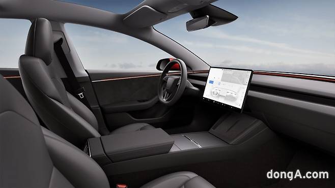 실내도 꽤 많이 변했다. 먼저 스티어링 휠 디자인이 바뀌었다. 테슬라 로고가 사라지고 영문 로고만 새겨졌다. 모델S와 X처럼 방향지시등과 변속기 레버가 사라지고 방향지시등 터치 버튼이 스티어링 휠에 통합됐다. 스티어링 휠 양쪽 터치패드는 햅틱 기능을 지원한다. 변속기는 15.4인치 센터디스플레이 터치 슬라이더로 대체됐다. 센터디스플레이는 베젤이 얇아졌고 반응속도와 밝기를 향상시켰다. 17개 스피커로 구성된 오디오 성능도 업그레이드됐다고 테슬라 측은 전했다. 여기에 뒷좌석 승객을 위한 8.0인치 디스플레이도 추가됐다. 각종 차량 기능과 엔터테인먼트 기능을 즐길 수 있다.