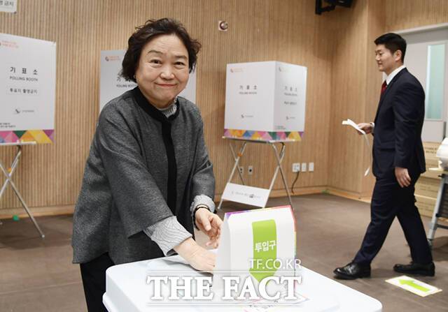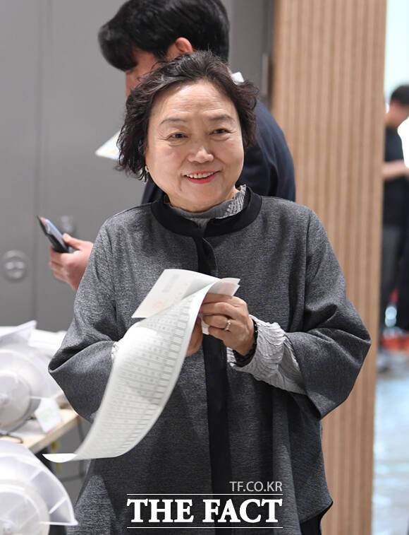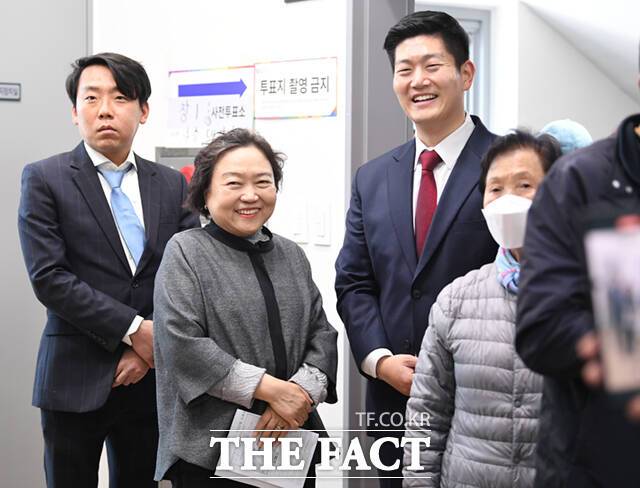사전투표소에서 만난 인재근-김재섭 '나란히 한표 행사' [TF사진관]