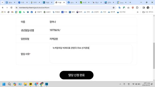 | ▲ 장하나 전 의원은 5일 페이스북에 더불어민주당 탈당 소식을 전하며 녹색정의당 비례대표 후보 4번, 권영국 변호사를 지지한다고 밝혔다. |
