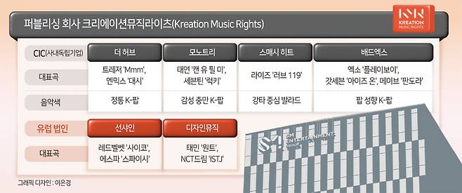 멀티 제작센터를 원활히 움직이게 할 음악 창작의 근간엔 음악 퍼블리싱 자회사 크리에이션뮤직라이츠(Kreation Music Rights, 이하 KMR)가 있다. KMR은 SM의 음악 사업 뿌리 역할을 할 ‘성장 동력’이다.