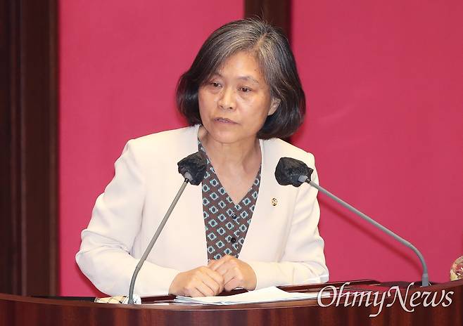 | ▲ 강민정 더불어민주당 의원이 5일 서울 여의도 국회 본회의장에서 열린 교육·사회·문화에 관한 대정부질문에서 질의하고 있다. |