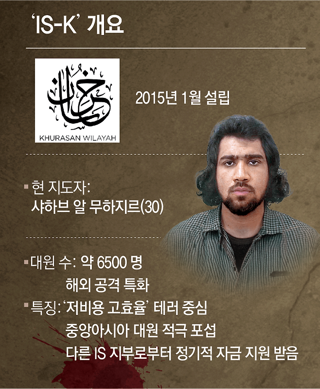 러시아 연방보안국(FSB) 추산에 의하면 2015년 창설 당시 약 2000명이던 대원 수는 올해 3배 이상인 6500명 수준으로 불었다. 실탄도 넉넉하다. 유엔 등에 따르면 이들의 활동 자금은 납치 밀수 강탈 등 범죄 수익, 아프리카 소말리아 등 다른 IS 지부로부터 받는 정기적 지원 등에서 나온다. 최근 몇 년간 잇따른 테러로 두각을 나타낸 이들에게 IS 지도부도 지원을 몰아주고 있다. 소말리아 IS 지부가 가상화폐 탈취 등을 통해 IS-K에 정기적으로 돈을 준 사실도 드러났다.