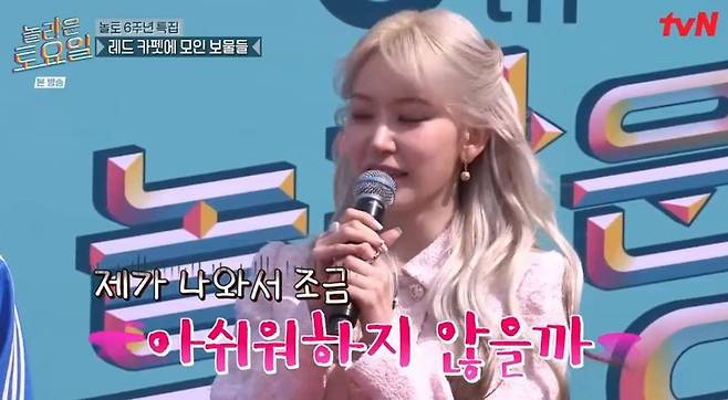‘놀토’ 6주년을 맞아 레드카펫 행사가 펼쳐진 가운데 한해는 르세라핌 사쿠라와 함께 등장했다.