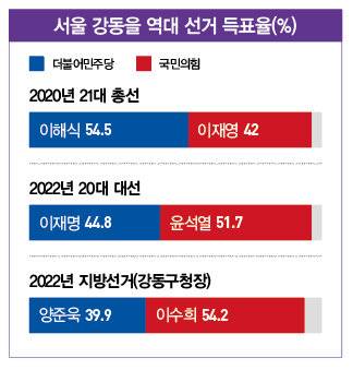 길동이 선거구 변경으로 강동갑에서 옮겨온 것도 민주당 우세를 더하는 변수다. 길동은 21대 총선에서 민주당 후보(진선미 의원)에게 52.43%의 지지율을 보인 곳으로 민주당 강세 지역이다. 강동을 민주당 후보에겐 호재, 국민의힘 후보에겐 악재인 셈이다.