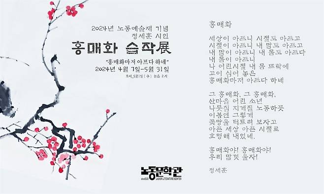 | ▲ 홍매화 전시회 2024 제3회 노동예술제 기념 시인 정세훈 홍매화 전시회 |