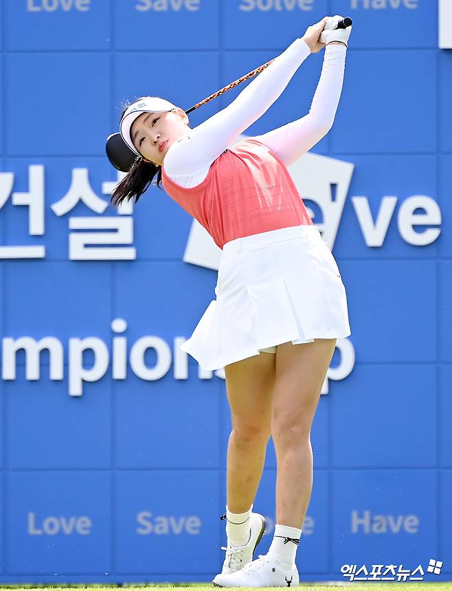 (엑스포츠뉴스 제주, 김한준 기자) 7일 제주 서귀포시 테디밸리 골프앤리조트에서 열린 '두산건설 We've 챔피언십'(총상금 12억 원, 우승상금 2억 1600만 원) 최종라운드, 유현조가 1번홀 티샷을 날리고 있다.