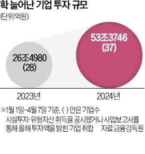 올 들어 기업들의 투자 규모가 확 늘었다. 석 달여 동안 기업들이 내놓은 투자 규모가 50조원을 훌쩍 넘었다. 작년 같은 기간보다 두 배로 급증한 규모다. 주로 고대역폭메모리(HBM)·2차전지·친환경 등 미래 성장동력 분야에 집중적으로 투자하는 것으로 나타났다. 기업 밸류업의 일환으로 배당 확대와 자사주 소각 등의 요구가 거세지고 있는 상황에서 중장기 기업가치를 끌어올리기 위해 투자 확대에 적극적으로 나서고 있다는 분석이다.