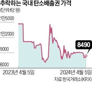 국내 탄소배출권 가격이 지난해 8월 역대 최저치까지 급락한 이후 좀처럼 t당 1만원대를 회복할 기미를 보이지 않고 있다. 시장에서 지나치게 낮게 책정된 탄소배출권 가격이 기업들이 탄소 감축 기술에 투자할 유인을 저하시키고 있다는 지적이 나온다.
