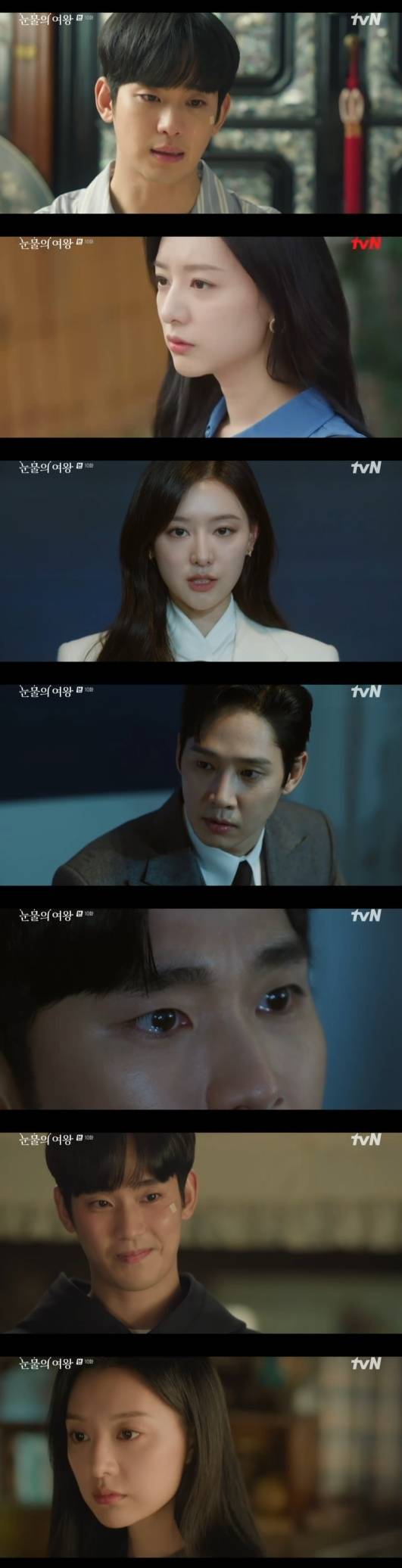 7일 방송된 tvN 토일드라마 '눈물의 여왕'에서는 홍해인(김지원 분)이 백현우(김수현)의 취중고백에 자신의 약점을 모두 밝히는 모습이 담겼다.