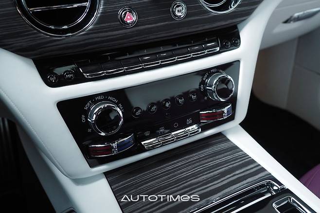 철컥 하는 소리와 함께 금고 문을 여는 것처럼 묵직한 도어를 잡아 당겼다. 실내는 또 다른 세상이 펼쳐진다. 자동차의 개념을 잊을 만큼 럭셔리한 라운지가 연출된 것. 입이 벌어지고 저절로 박수가 나온다. 전체적인 1열 구성은 여느 롤스로이스와 마찬가지로 디자인 통일감을 부여했다. 원형 송풍구와 각종 버튼, 센터터널도 큰 변화를 주지 않았다.