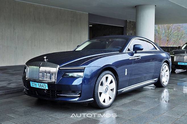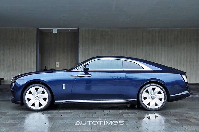 스펙터의 첫 인상은 익숙하다. 전기차다운 특별함을 드러내기 보다는 롤스로이스 본연의 모습을 더욱 강조했다. 거대한 사각 그릴과 투톤 보닛, 각을 살린 펜더 등 멀리서 봐도 단번에 롤스 패밀리임을 알게 한다. 얇은 주간주행등과 분리형 헤드램프 정도가 신형다운 유일한 차이점이다. 옆은 거대한 크기가 주변을 압도한다.