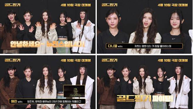 뉴진스는 응원 영상을 통해 “양조위 배우님께서는 저희 ‘Cool With You’ 뮤직비디오에도 출연해 주셨는데요. 저희와도 깊은 인연이 있는 양조위 배우님의 작품”이라며 ‘골드핑거’를 소개했다. 또한 “‘골드핑거’는 ‘무간도’ 이후 양조위, 유덕화 배우님이 20년 만에 함께하는 작품이고 두 배우님의 흥미진진한 대결 장면을 스크린에서 감상하실 수 있습니다”라고 전했다. 끝으로 “특히 악역으로 변신한 양조위 배우님과 양조위 배우님의 뒤를 쫓는 유덕화 배우님의 강렬한 연기도 특별한 감상 포인트라고 합니다”라며 영화 팬들에게 감상 포인트와 응원의 파이팅을 외쳐 ‘골드핑거’에 대한 기대감을 높였다.