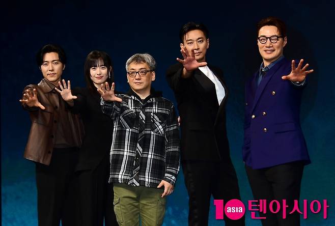 [텐아시아=조준원 기자]주지훈, 한효주, 이희준, 이무생, 박철환 감독이 8일 오전 서울 영등포구 콘래드 서울 호텔에서 열린 디즈니+의 오리지널 시리즈 <지배종> 제작발표회에 참석해 포즈를 취하고 있다.