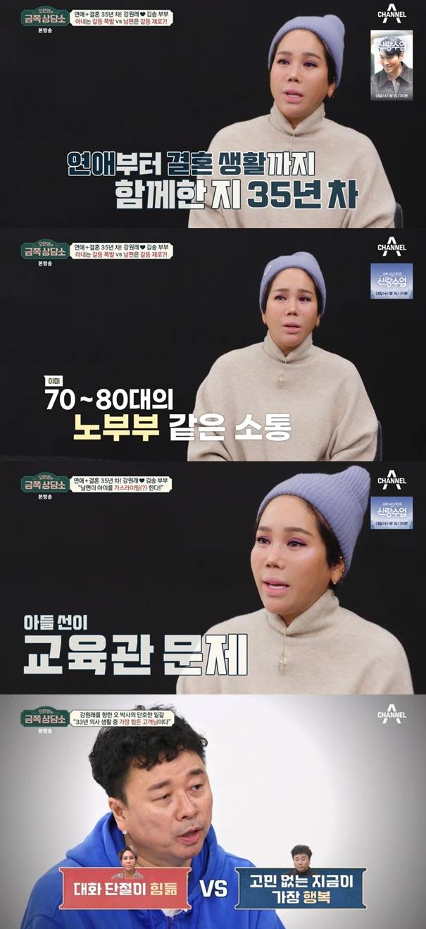 최근 채널A '오은영의 금쪽 상담소'에서 김송은 아들 선이의 교육문제로 강원래와 갈등을 겪는다고 고백했다.