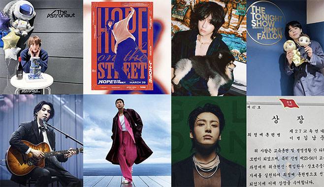 전역이 코 앞으로 다가온 진에게는 그가 입대 전 발표한 첫 솔로 싱글 앨범 ‘디 애스트로넛’이 세계 최대 음원 검색 플랫폼 샤잠 일본에서 1위를 재탈환하는 상황이 벌어졌다. 1년이 훌쩍 넘은 지금까지도 큰 사랑을 받고 있다는 사실이 증명되는 순간이겠다. RM은 BTS의 단체 활동이 잠정적으로 중단된 후 본인의 취향을 살려, 인간과 삶에 관한 여러 지식들을 흥미롭게 다루는 프로그램 ‘알쓸인잡(알아두면 쓸데없는 신비한 인간 잡학사전)’에 출연하여 BTS의 철학적 기조에 있어 핵심적인 존재로서의 가치를 가감 없이 자랑했다.
