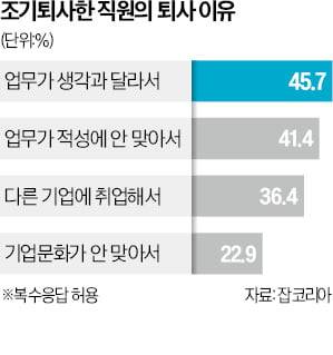 직원이 회사에 밝힌 퇴사 이유는 '업무가 생각했던 것과 달라서(45.7%·복수응답)'가 가장 많았다.
