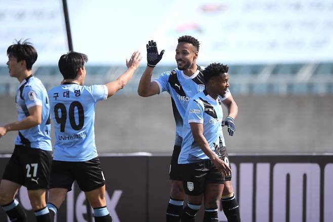 지난 시즌 문턱에서 1부 승격이 좌절된 부산이 8위(승점 6·2승3패), 성남은 10위(승점 5·1승2무2패)다.