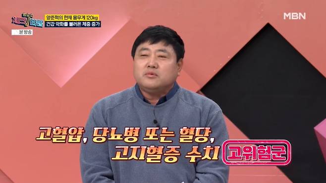 의사는 최근 건강 검진 결과를 보여주며 "총콜레스테롤, 공복 혈당, 고혈압 등 모든 수치가 정상 수치보다 높게 나왔다"고 말했다.