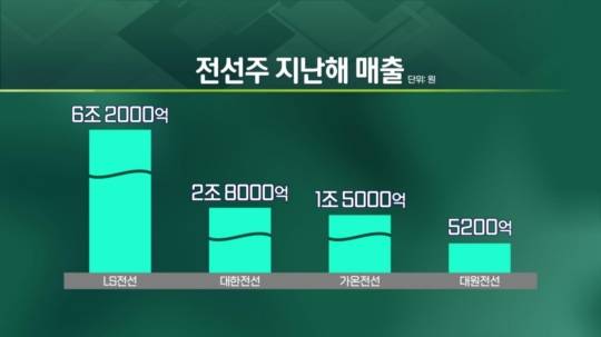 <앵커> 여타 전선주도 함께 오르고 있는데 규모나 포트폴리오는 어떻게 차이가 나나요?