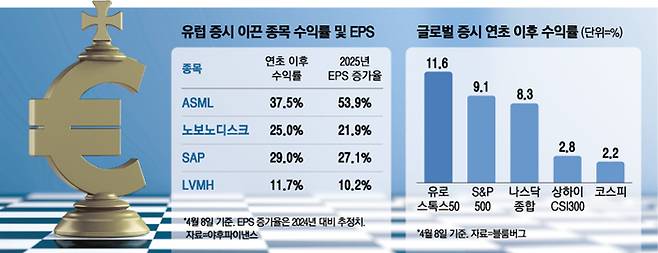 블룸버그에 따르면 연초 이후 유로스톡스 50 지수는 11.6% 뛰었는데 이는 같은 기간 S&P500(9.1%)과 나스닥종합(8.3%) 지수보다 높은 상승률이었다.