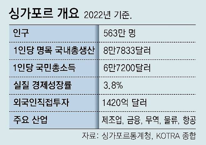 9일 한국수출입은행에 따르면 2019∼2023년 싱가포르에 생긴 한국 신규 법인 수는 741개였으며, 국내 기업들의 싱가포르 투자 규모는 약 141억 달러였다. 같은 기간 국내 기업들이 중국에 투자한 규모(281억 달러)의 절반 수준이지만, 한중 무역 규모가 한-싱가포르의 9배에 이른다는 점에 비춰 보면 상당한 투자라는 평가다.