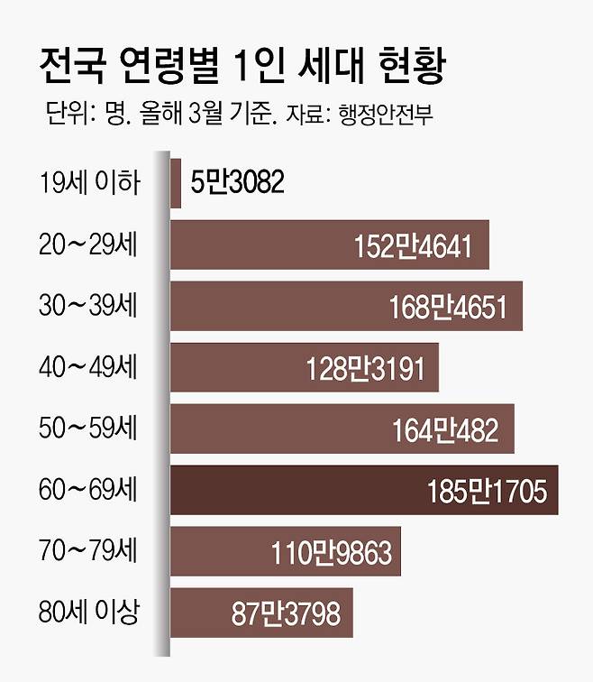1인 세대, 1000만 명 첫 돌파… 60대가 최다, 남성 〉여성