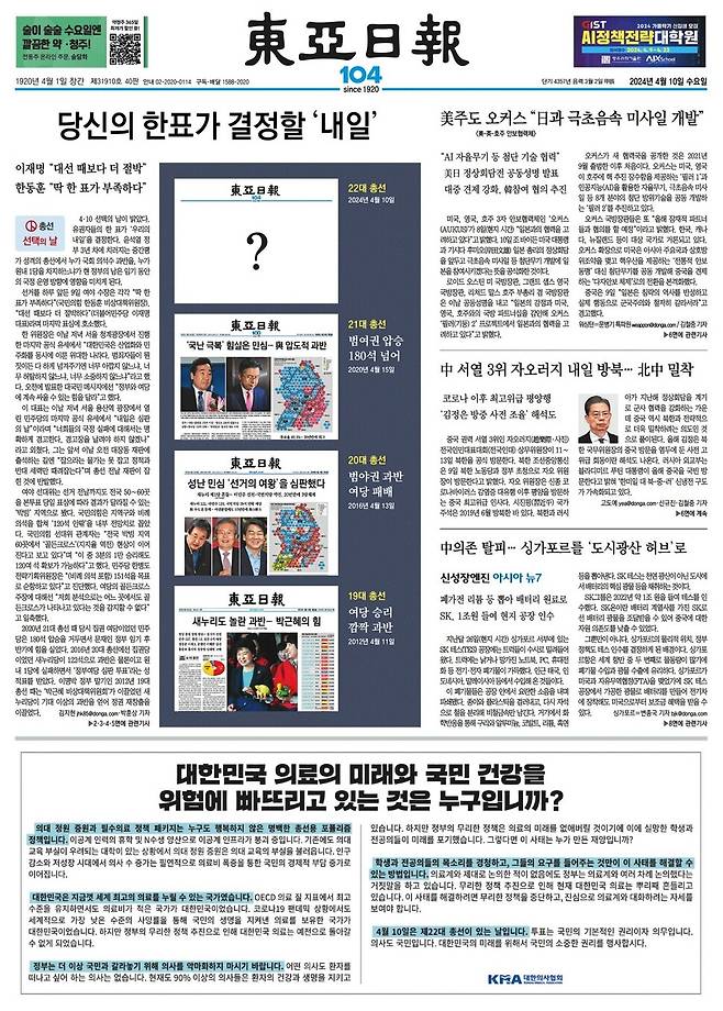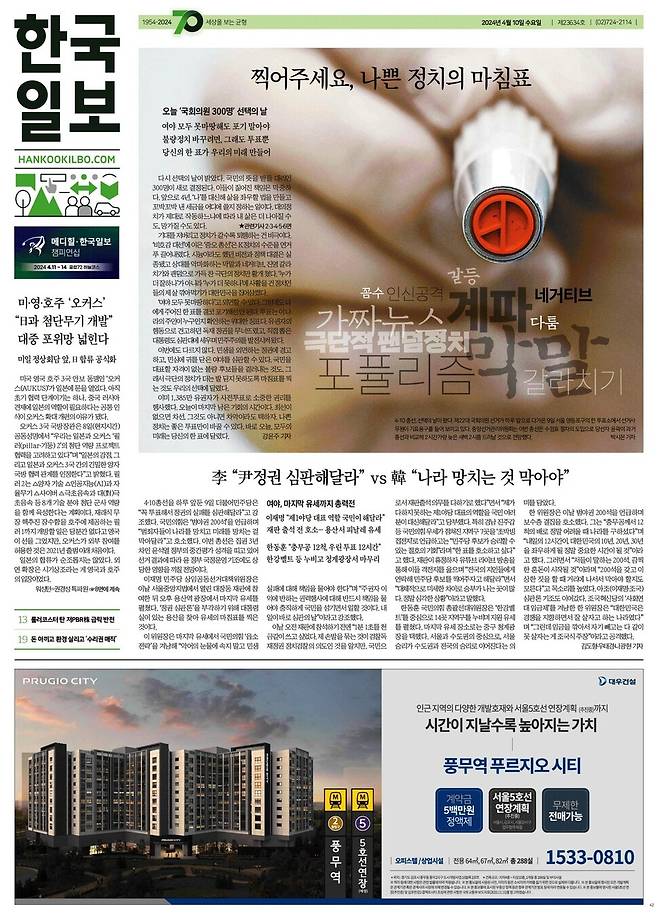 조선 = 오늘 총선 ‘내 편, 네 편’ 아닌 정책과 후보 자질로 판단을