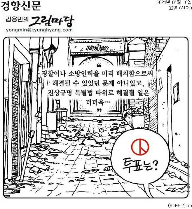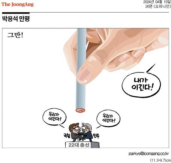 - 한겨레·경향, 그리고 중앙의 만평 메시지가 서로 다릅니다. ‘심판’과 ‘양비론적 정치혐오’로 나뉘어지는 듯합니다.