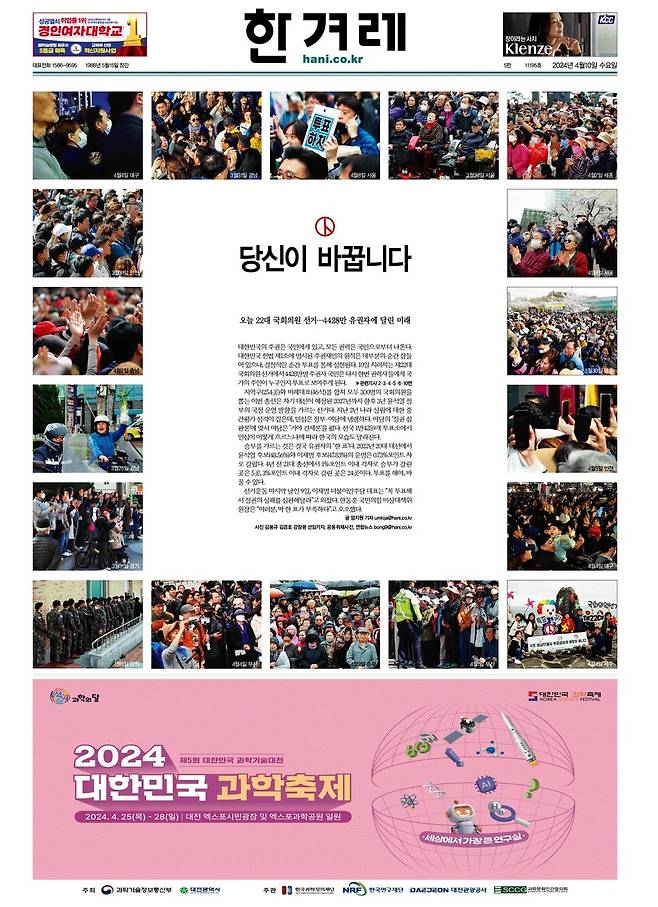 한겨레 = 우리 사회·정치 바꿀 희망, 한 표가 시작이다