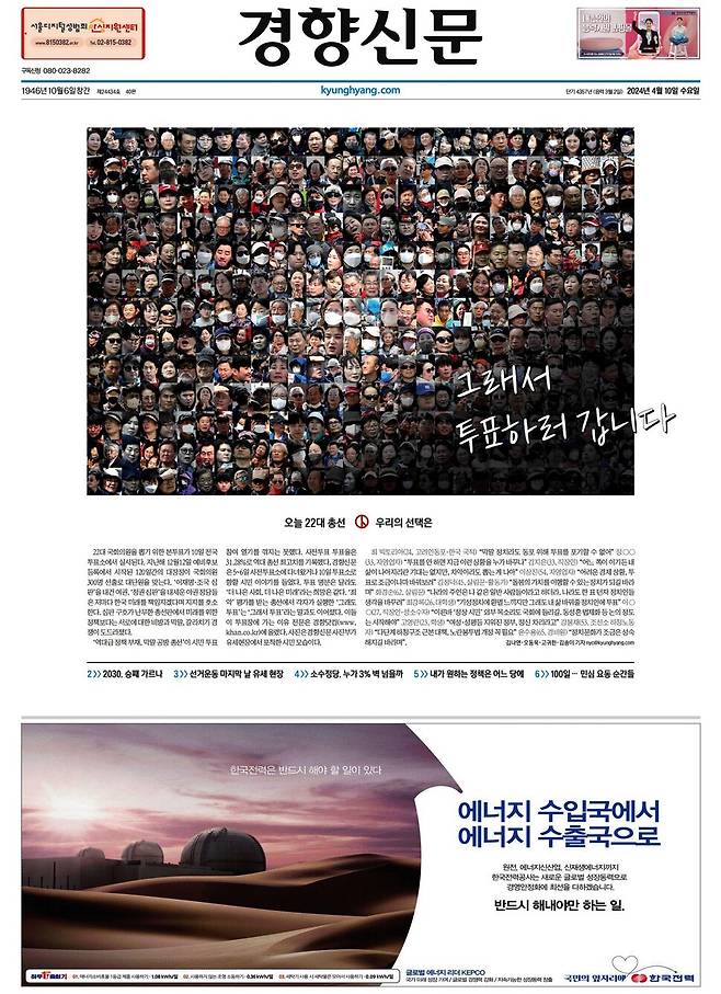 - 각 신문 투표 관련 사설 제목입니다. 동아일보는 투표 관련 사설을 쓰지 않았습니다. 특별한 의도가 있었다기보단, 아마 ‘뻔한 사설’은 피하자는 다소 ‘신선한 선택’을 해보자는 쪽 아니었을까 싶습니다. 그래도 ‘뻔한 사설’이라도 쓰는 게 신문의 역할 아닐까 싶긴 합니다.