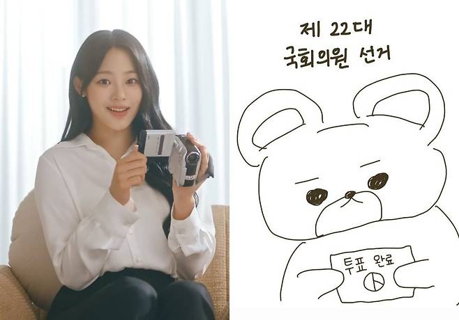 '선거 광고' 찍은 뉴진스 민지도 투표 완료...직접 그린 그림으로 '인증'