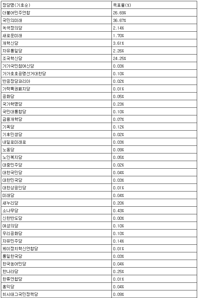 [표] 22대 총선 정당 득표율