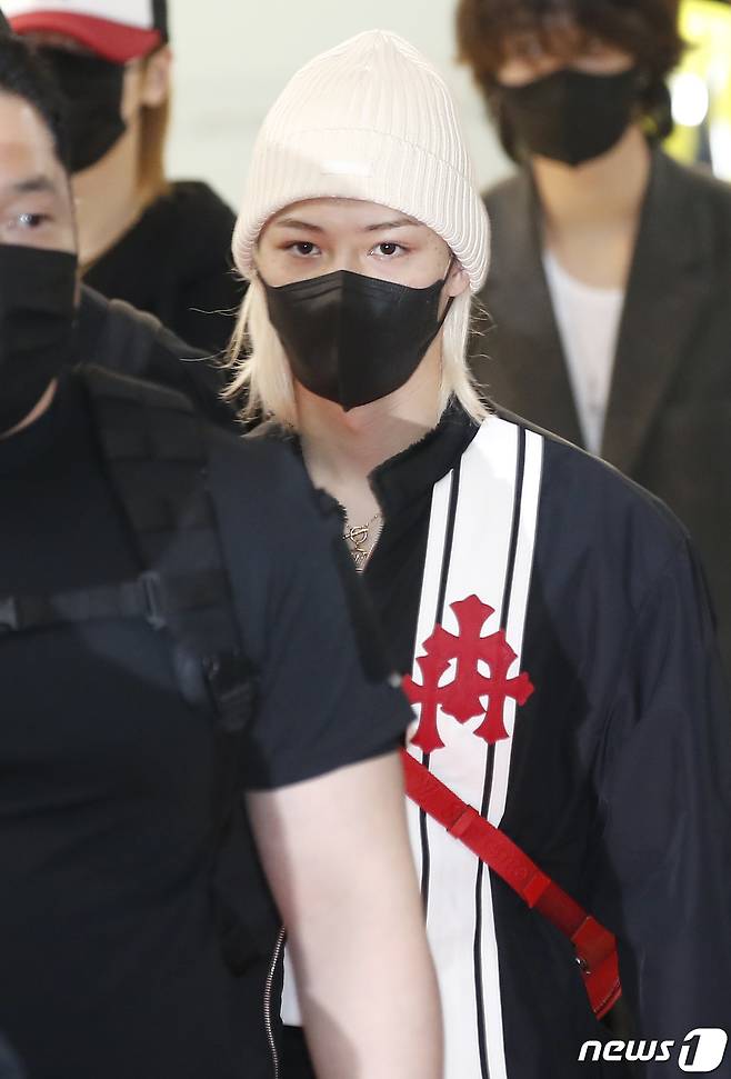 (김포공항=뉴스1) 권현진 기자 = 스트레이 키즈 필릭스가 일본 일정을 마치고 11일 김포국제공항을 통해 귀국하고 있다. 2024.4.11/뉴스1