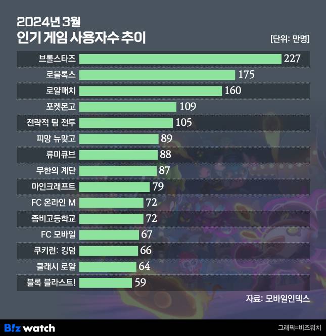 업계 관계자는 "초등학생이 특정 게임을 즐기는 요인이 정확하게 무엇인지는 알기 어렵다"면서도 "초등학생과 부모 모두 편하게 즐길 수 있고 또래들이 즐기는 게임이 입소문을 타면서 꾸준한 인기를 얻는 것 같다"고 말했다.