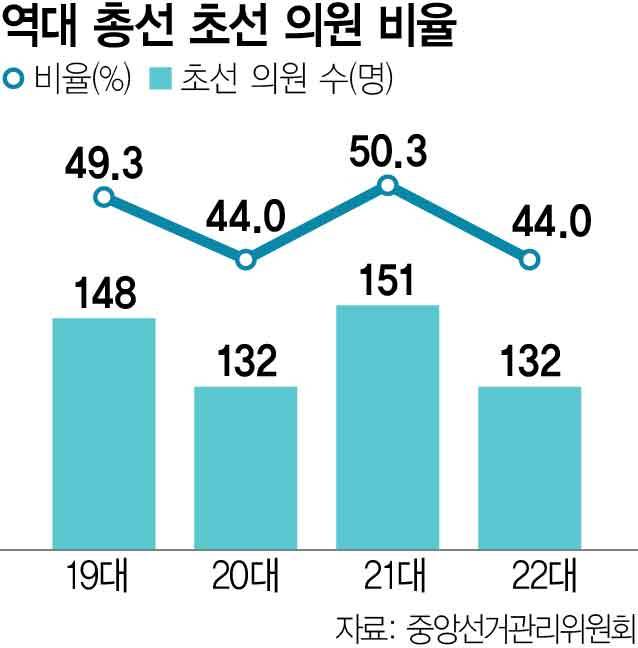 초선 의원 비율 50.3%→44%로 감소