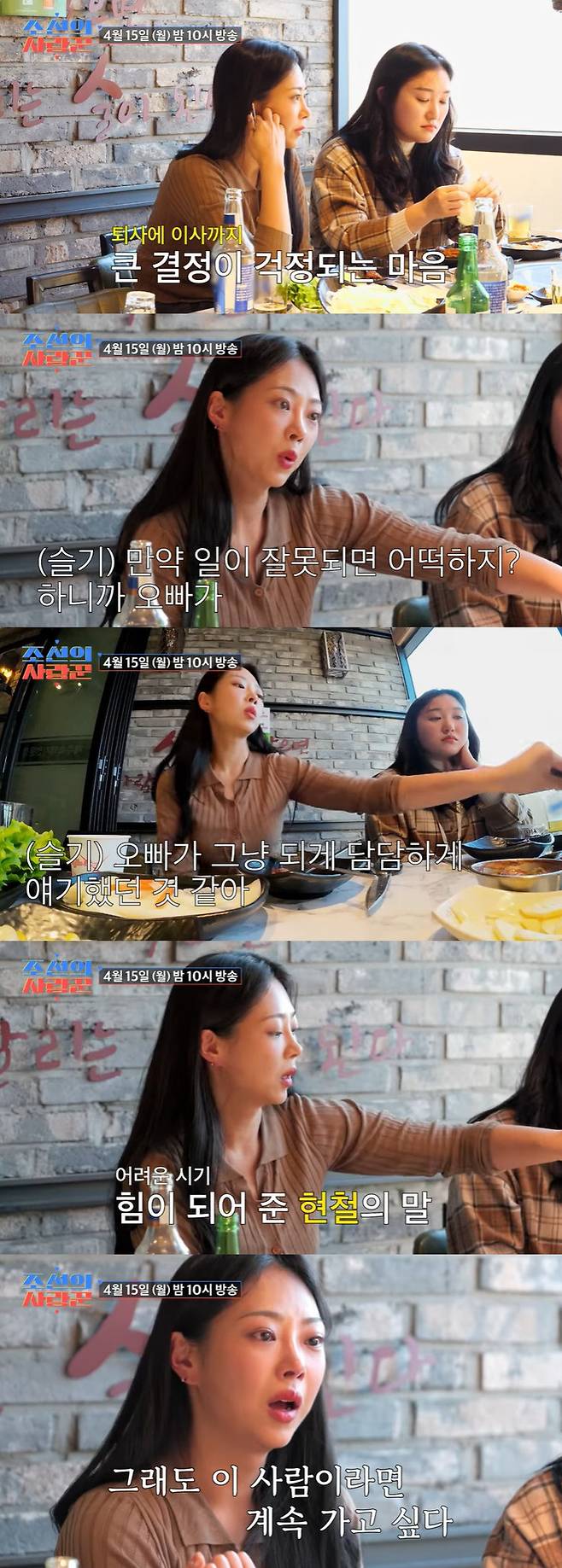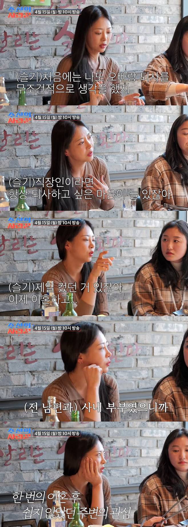 11일 TV조선 '조선의 사랑꾼' 측은 '재혼커플 슬기의 대기업 퇴사 고민을 하는 이유가?!'라는 제목의 선공개 영상이 게재됐다.
