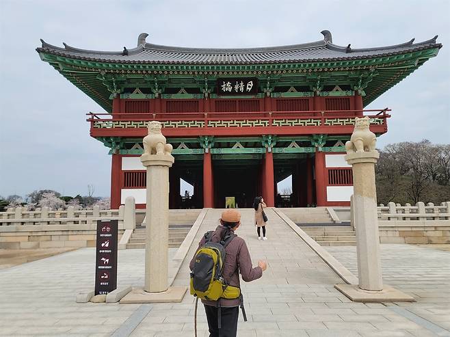 월정교 내부는 외형의 아름다운 단청과 화려함에 통나무기둥의 안정감 있는 배치가 더해졌다. 역사와 현대 건축 기술의 만남이랄까. 사진 촬영에 여념이 없는 외국인 친구들이 눈에 띈다. 한복을 입고 소리꾼이 소리하는 모습을 영상으로 촬영하는 친구도 있다. 모두 그 웅장함과 화려함에 놀란다.