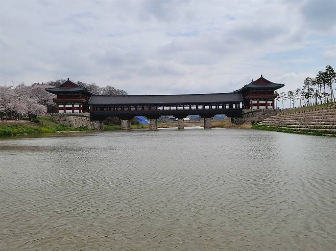 | ▲ 월정교 통일신라시대의 교량으로, 조선시대에 유실되어 없어진 것을 고증을 거쳐 2018년 4월 복원 완료했다. |