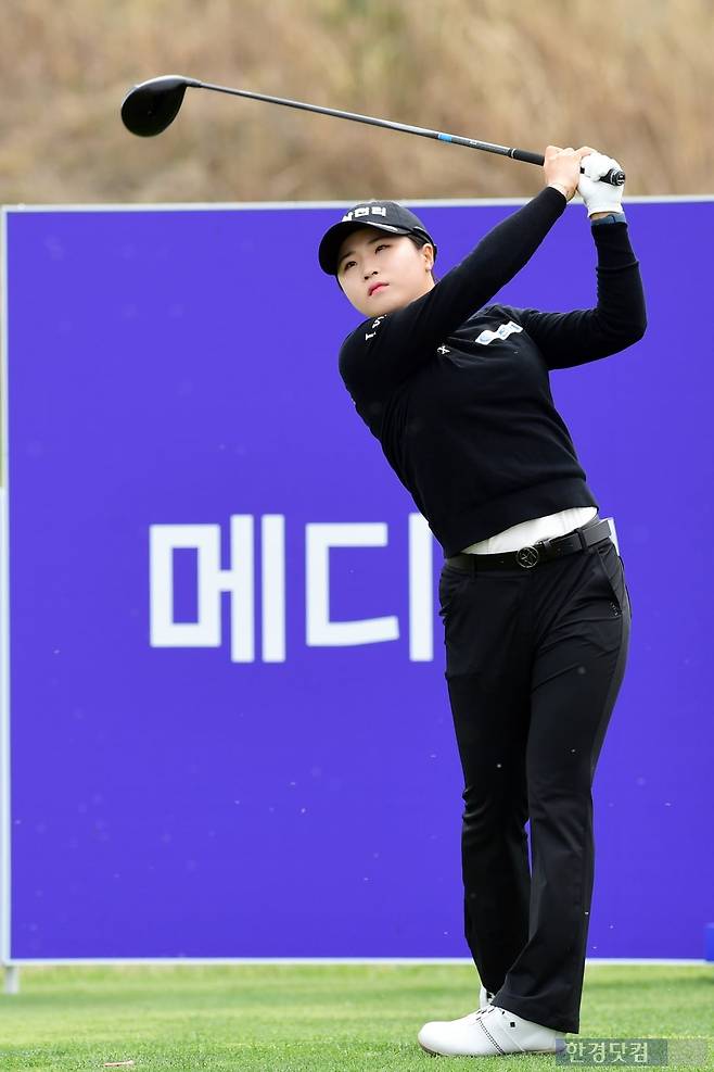 KLPGA(한국여자프로골프)투어 ‘메디힐 · 한국일보 챔피언십’(총상금 10억원) 1라운드 경기가 11일 인천 운서동 클럽72CC(파72·6648야드)에서 열렸다. 대회에 출전한 고지원이 10번 홀에서 티샷하고 있다.