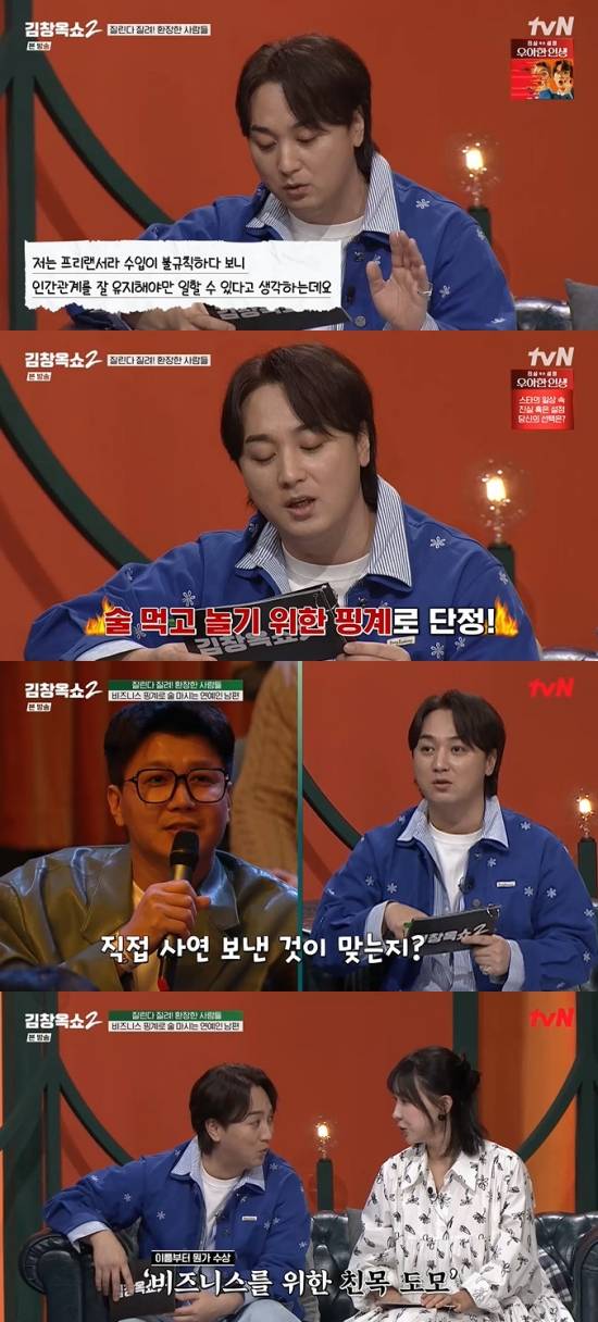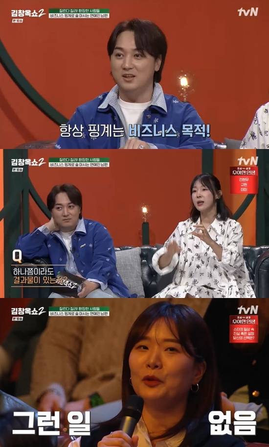 황제성은 "사연에 비즈니스를 위한 친목 도모라는 이야기가 나오지 않았냐. 흔히 이야기하는 술자리가 생각이 나는데 맞냐"라며 거들었다.