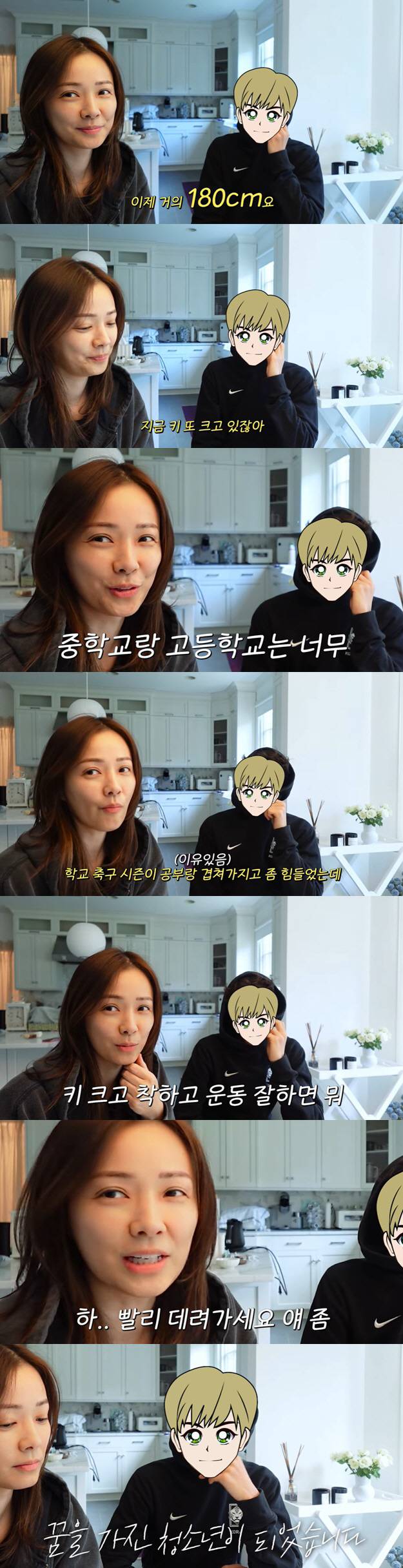 "키가 몇이냐"는 질문에 룩희 군은 이제 거의 180cm다. 2cm? 1cm? 남았다. 지금 또 크고 있다"고 밝혔다. 손태영 역시 "키 계속 크고 있다. 무릎이 계속 아프다더라"라고 덧붙였다.