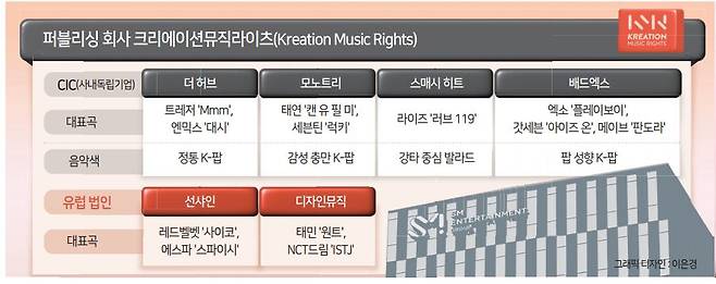 멀티 제작센터를 원활히 움직이게 할 음악 창작의 근간엔 퍼블리싱 자회사 크리에이션뮤직라이츠(KMR)가 있다. KMR은 SM의 음악 사업 뿌리 역할을 할 ‘성장동력’이다. KMR의 수장은 이성수 CAO가 겸직하고 있다.