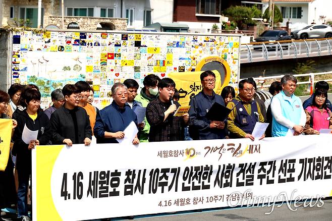 경남준비위는 회견문을 통해 "지난 10년 동안 우리는 세월호 참사의 진실을 찾고자 노력했다. 책임을 묻고 생명이 존중되는 안전한 사회를 만들고자 약속했다"라며 "하지만 진실 찾기는 실패했고 책임자는 무죄 선고를 받았다. 국가 책임의 인정, 대통령 사과, 미공개 정보이 공개 권고는 묵살 당했다. 대한민국 정부가 3번이 바뀌었지만 실체적 진실은 규명되지 못하고 있다"라고 말했다.