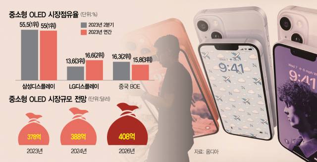 중소형 OLED의 전체 시장 규모는 지난해 처음으로 50조 원(378억 달러)을 넘겼다. 이 시장은 2020년 들어 40조 원 후반에서 성장이 정체됐고 코로나19 직후인 2021~2022년에는 스마트폰 수요 침체로 규모가 더 축소되기도 했다. 그러나 지난해부터 태블릿과 노트북 등 정보기술(IT) 시장을 중심으로 신규 수요처가 늘어나면서 다시 성장 궤도에 들어섰다.