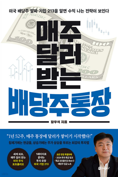 1년 52주, 매주 통장에 ‘달러’가 쌓이면 어떤 기분일까. “미국 배당주에 투자한다면 누구나 그 상상을 현실로 만들 수 있다”고 저자는 주장한다. 미국은 이익을 주주에게 환원하는 비율이 높고, 분기별로 배당을 지급하는 기업이 상당수라는 이유에서다. 수익을 내는 알짜 배당기업 213개를 짚어본다. 킴벌리 클락, 코그니전트 테크놀로지 솔루션스 등을 배당 안정성, 배당 성향성, 배당 수익률, 배당 지속성 등으로 들여다본다. 페이지2북스 펴냄.