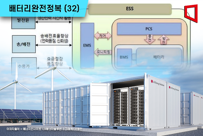 ESS는 크게 네 부분으로 구성된다. ▲전기를 저장하고 방전하는 배터리 ▲배터리의 전압·전류·온도 등을 제어하는 BMS(Battery Management System) ▲직류를 교류로 변환 후 전력을 공급하는 PCS(Power Conversion System·전력변환장치)▲배터리·PCS·BMS를 제어하는 운영 시스템인 EMS(Energy Management System)가 그것이다.